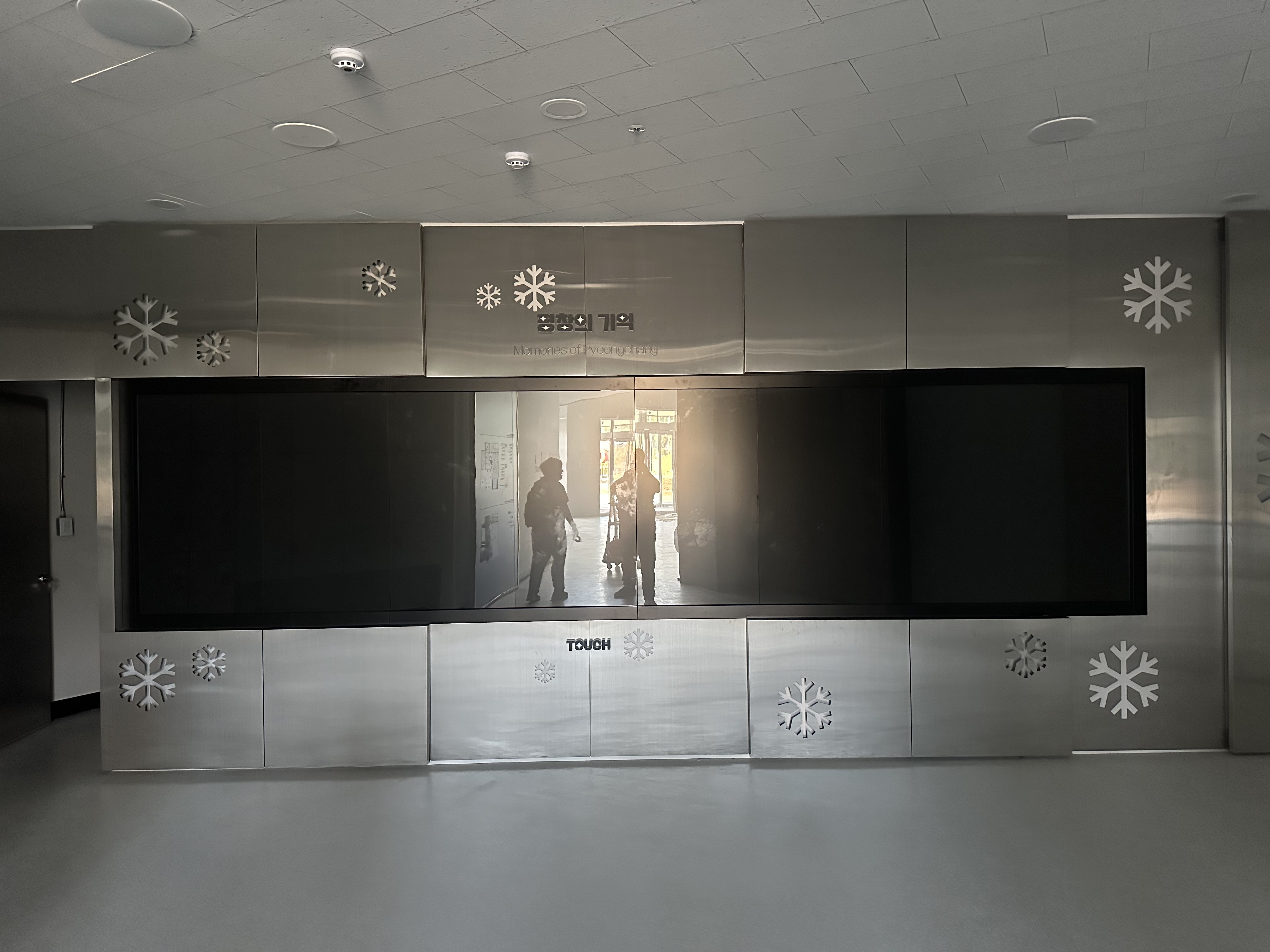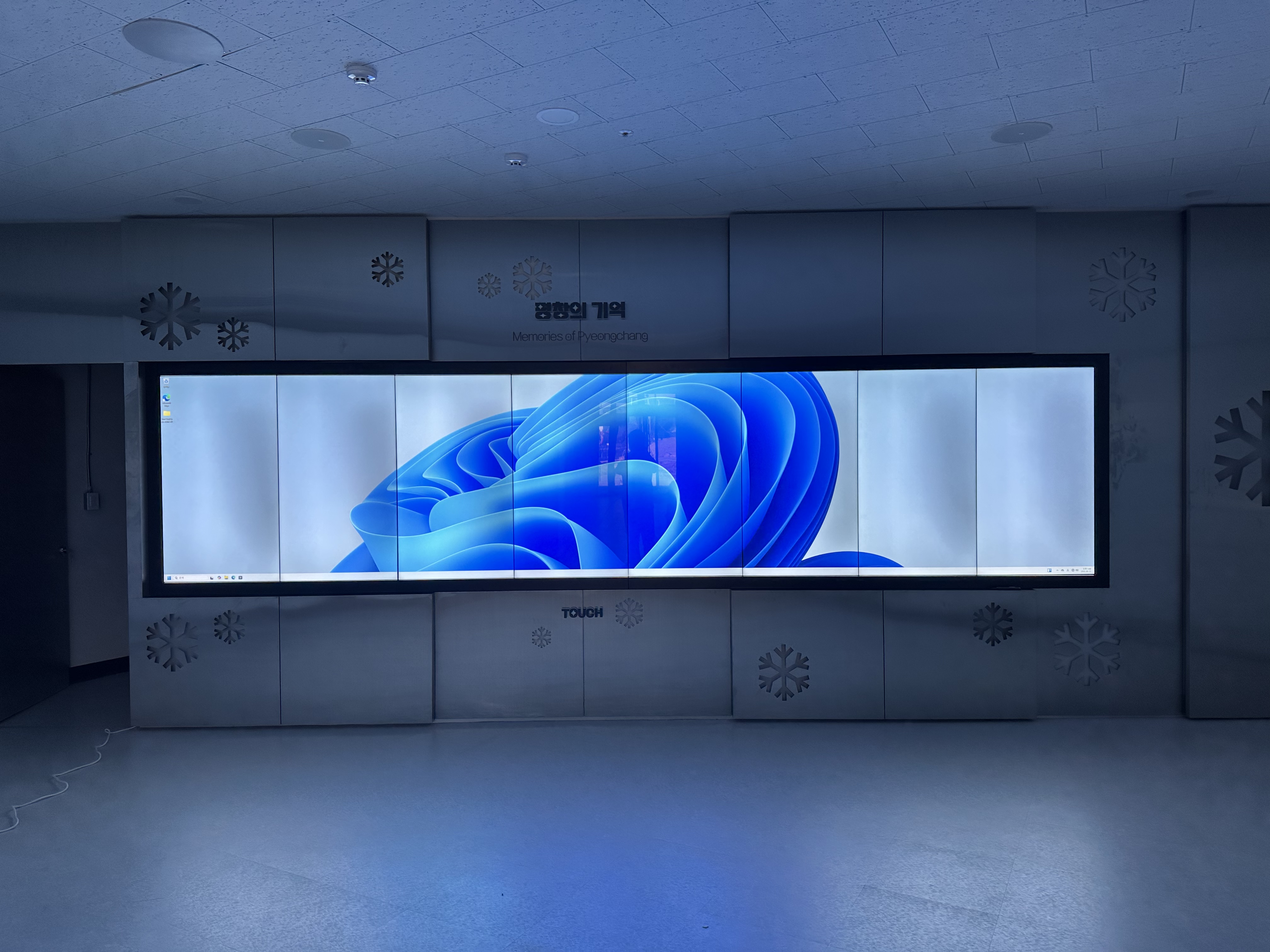 평창 올림픽 테마파크 로비에 55인치 1.74mm 베젤을 적용하여 1단 8열 적외선 터치 비디오월을 설치 납품하였습니다.